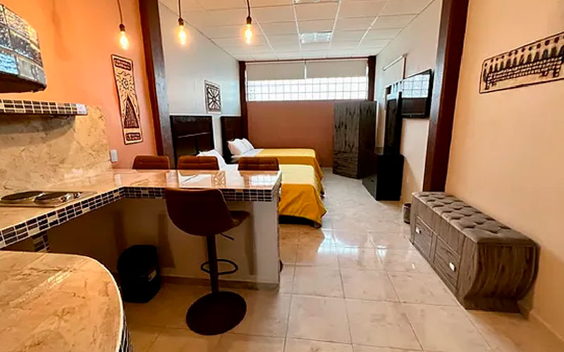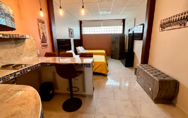 Se trata de un ESTUDIO totalmente amueblado, baño con ducha tipo lluvia, equipado con cocina completa y lavadero. Incluye pantalla plana de 55 pulgadas con Netflix y WiFi.